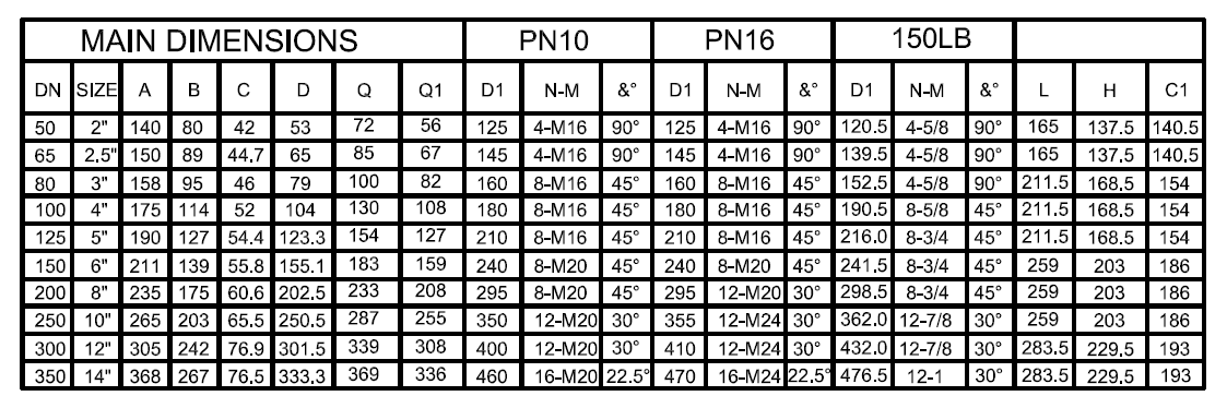 -連接標(biāo)準(zhǔn):PN10/16, ANSI150, DIN16, JIS10K, 16K