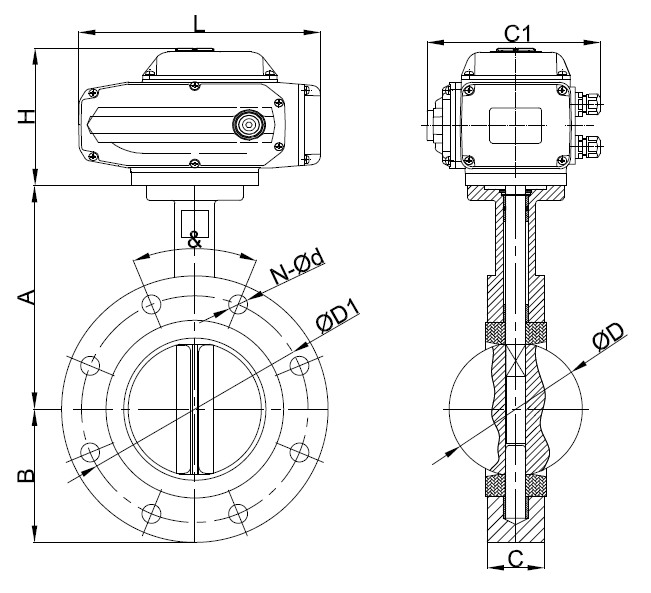 電動U型蝶閥外形圖: