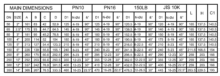 -連接標(biāo)準(zhǔn):PN10/16, ANSI150, DIN16, JIS10K, 16K