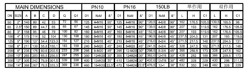 -連接標準:PN10/16, ANSI150, DIN16, JIS10K, 16K